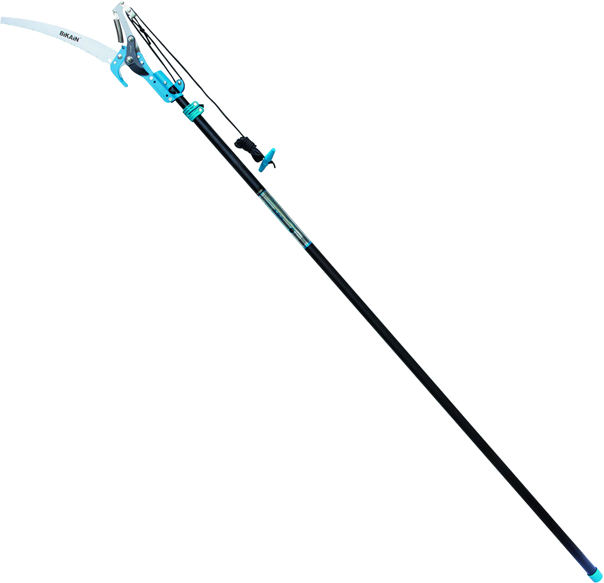Tijera pértiga cortarramas con serrucho. Mango de acero. Extensible hasta 380 cm.